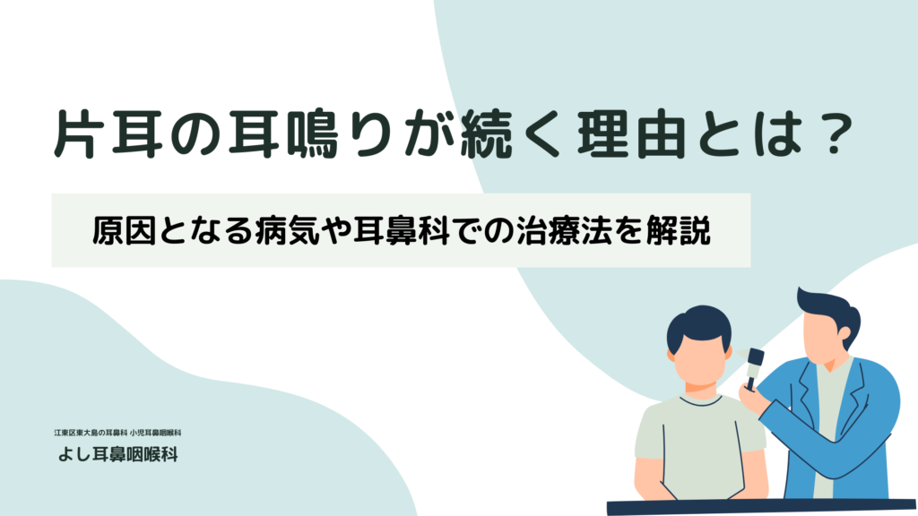 片耳だけの耳鳴りに悩んでいませんか? 片耳だけに起こる耳鳴りは原因がさまざまで、放っておくと症状が悪化することもあります。この記事では片耳で耳鳴りが起こる原因や耳鼻科でおこなう治療法について詳しく解説します。 【片耳で耳鳴りがする原因とは...