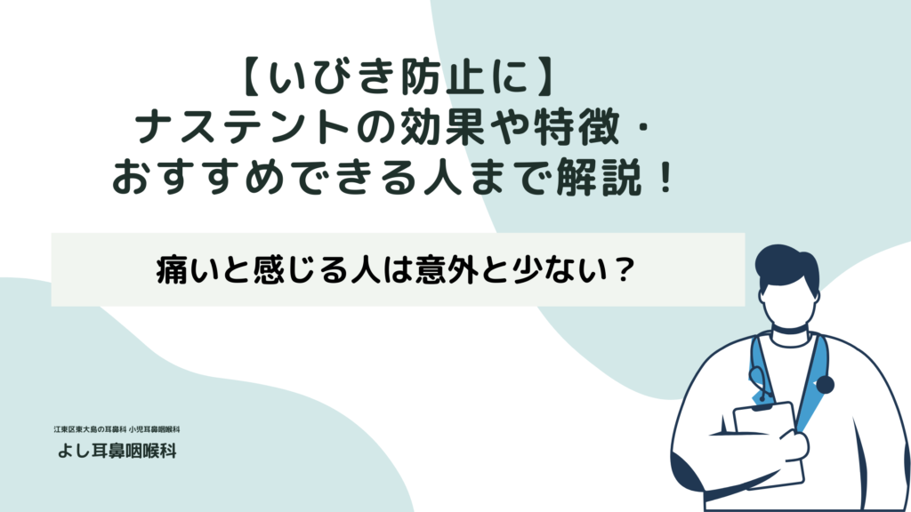 いびきの激しさを気にして病院で検査したのに、「異常なし」と言われてしまい悩んだことはありませんか? 現在はさまざまな治療方法が出ており、いびき治療の選択肢の1つとして「ナステント」があります。この記事ではナステントの効果や特徴、どんな人に...
