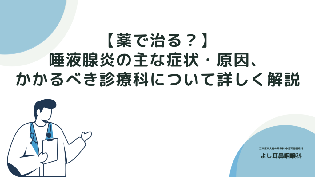 【薬で治る?】唾液腺炎の主な症状・原因、かかるべき診療科について詳しく解説