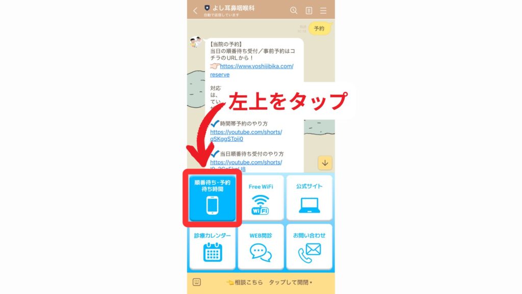 当院の公式LINE内のリッチメニューから予約することが可能です。こちらのボタンから友だち登録して、予約してください。
